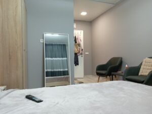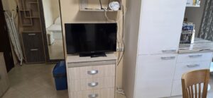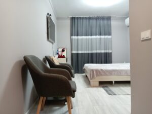 Жилището е със следното разпределение: Две спални -гардероби,шкафове,климатици,всекидневна с кухненска част кухнята е напълно оборудвана ,хладилници съдомиялна, ,две тераси с гледка към морето и странджа планина ,две бани/тоалетни.