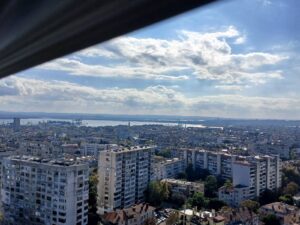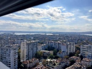 Продава се просторен апартамент без мебели, разположен на 17-ти етаж в нова модерна сграда в широкия център на гр. Бургас. Жилището предлага впечатляваща панорамна гледка към морето и отлична локация на комуникативно място, с бърз достъп до основни пътни артерии, магазини и услуги.